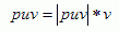 As v and puv share the same direction, and assuming the v is normalized, puv can be defined as: