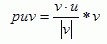 where |puv| stands for the length of puv. So finding out |puv| allows us to easily find vector puv. The relation between the length of u and puv is given by the cosine of the angle between them.
